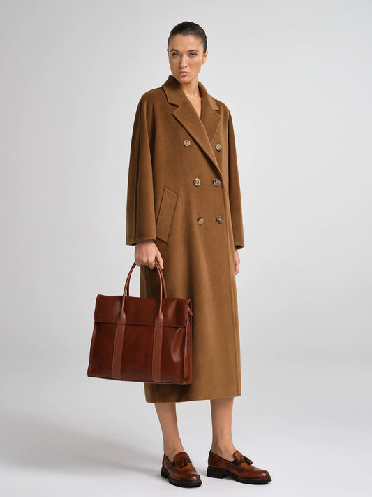Elegant Brown Cashmere Coat for Women Stylish Mid Long Design