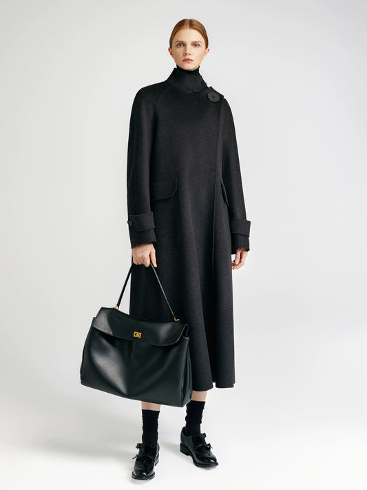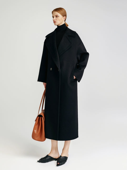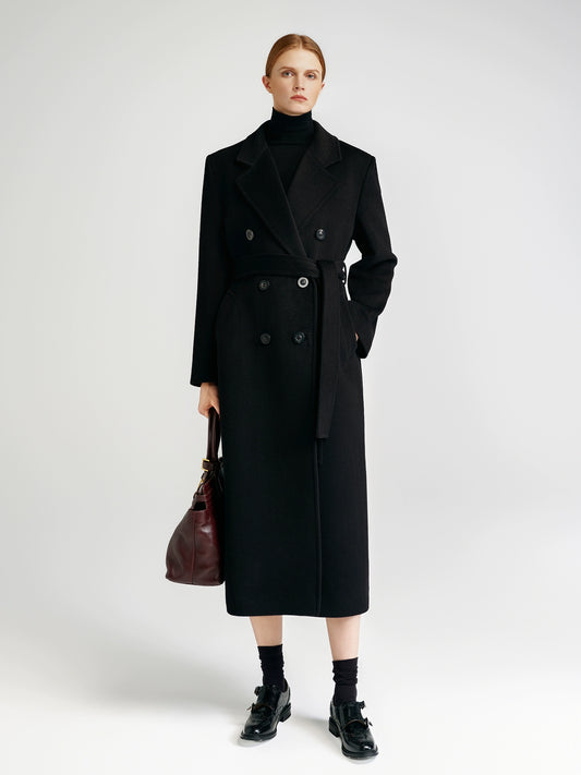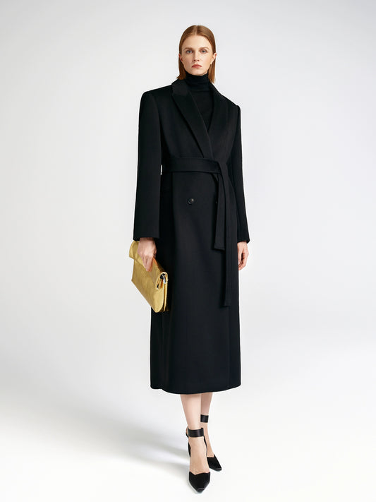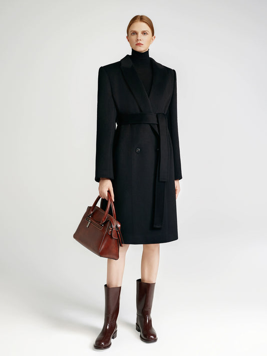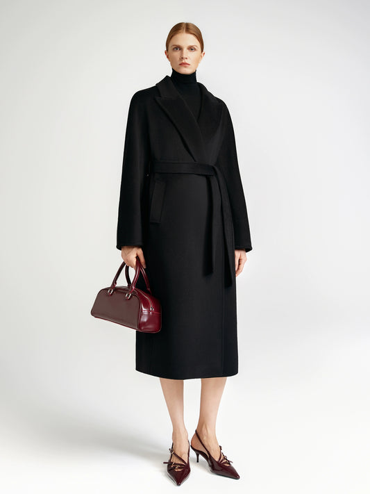 Front shoulder single-sided cashmere coat women's long strap-up black classic